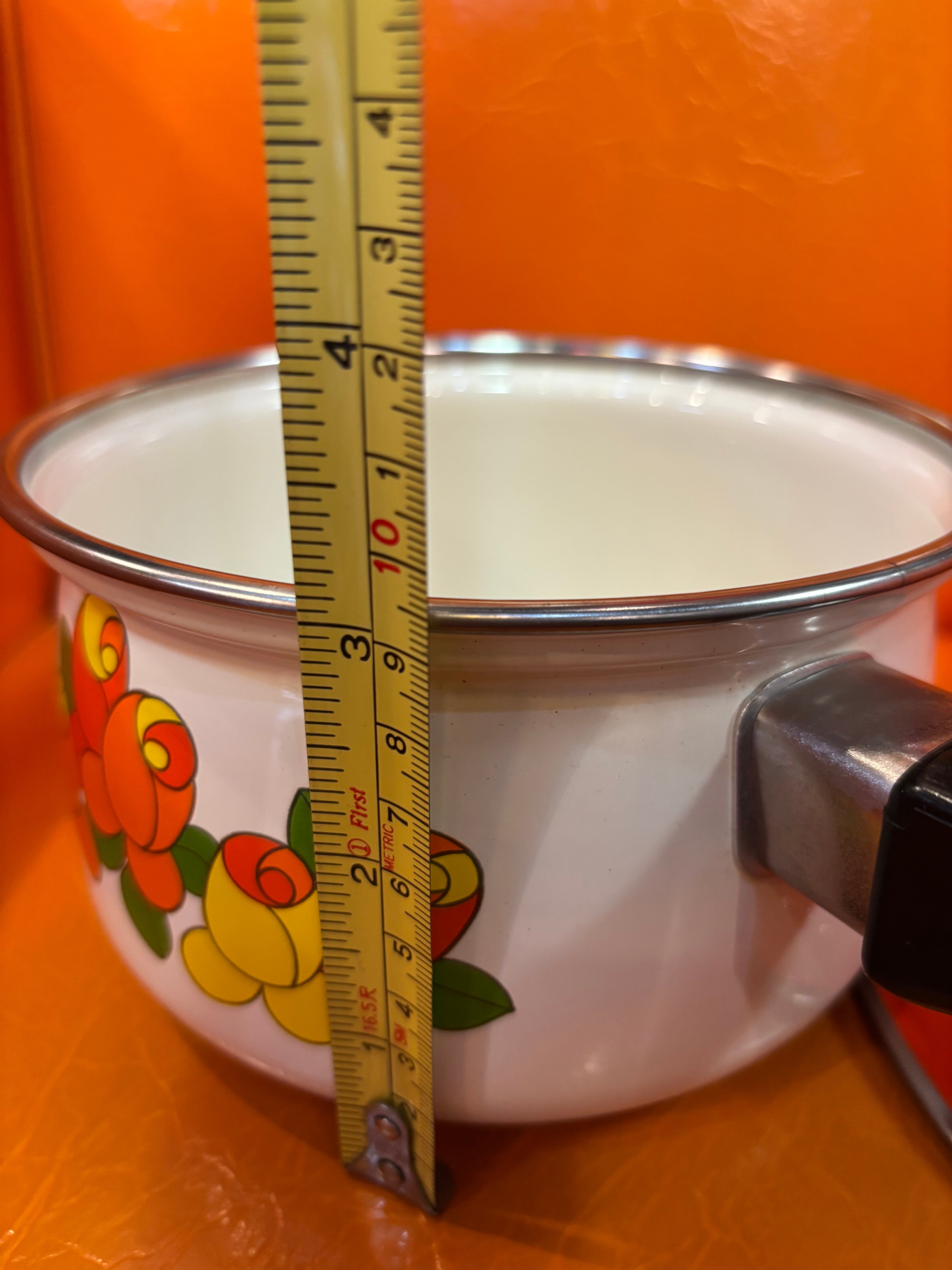レトロホーロー片手鍋 ミルクパン 蕾花柄 オレンジ