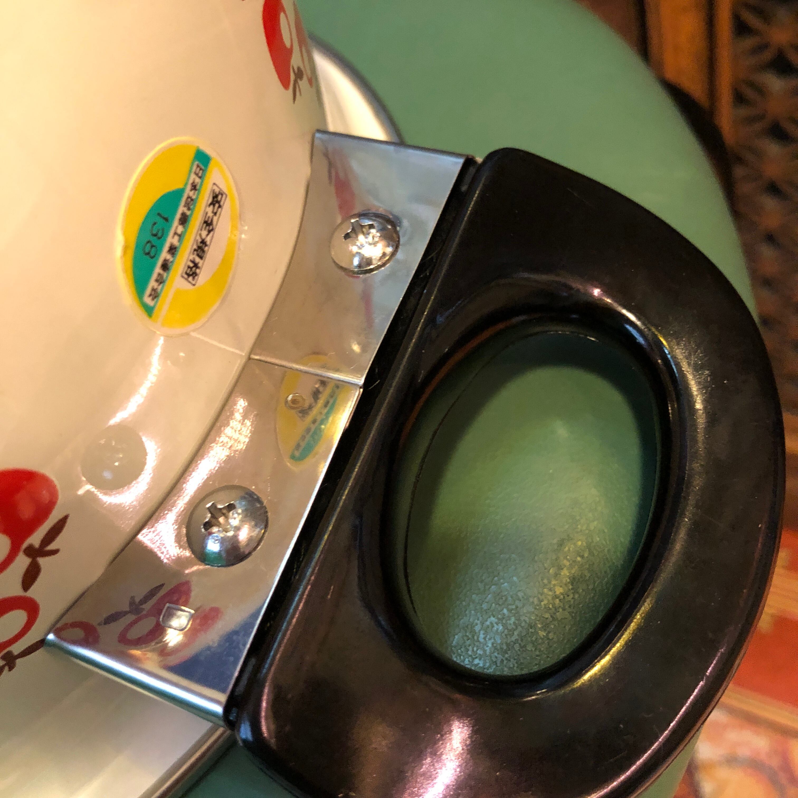 可愛らしいりんご模様のレトロなホーロー両手鍋です!小さなりんごが輪になって踊っているみたい♡♡♡ いろいろなホーロー鍋に出会ってきましたが、このりんご柄は珍しくデコハチ店長一目惚れ!