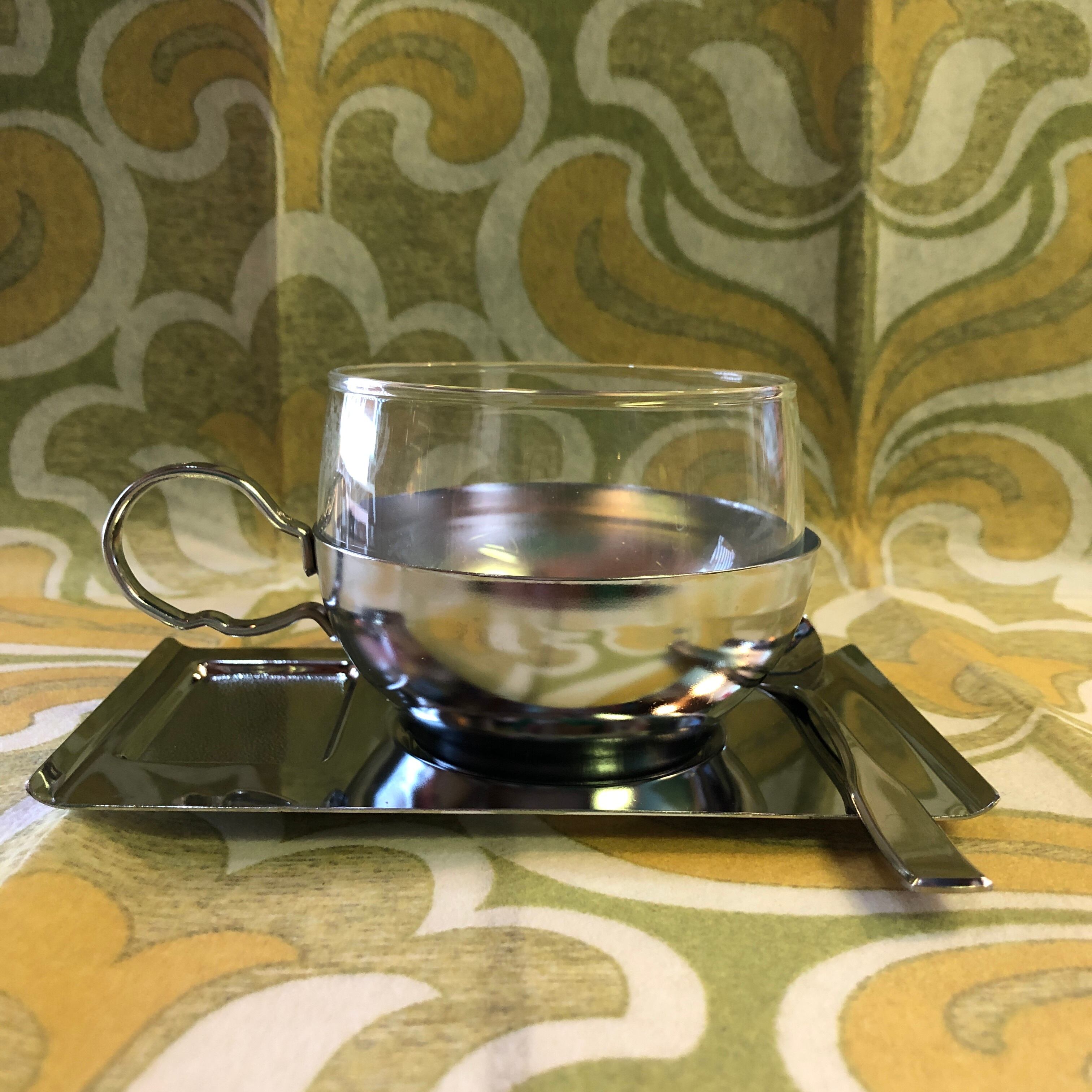 レトロ スペーシー C&S+S カップアンドソーサー コンビ ガラス 銀