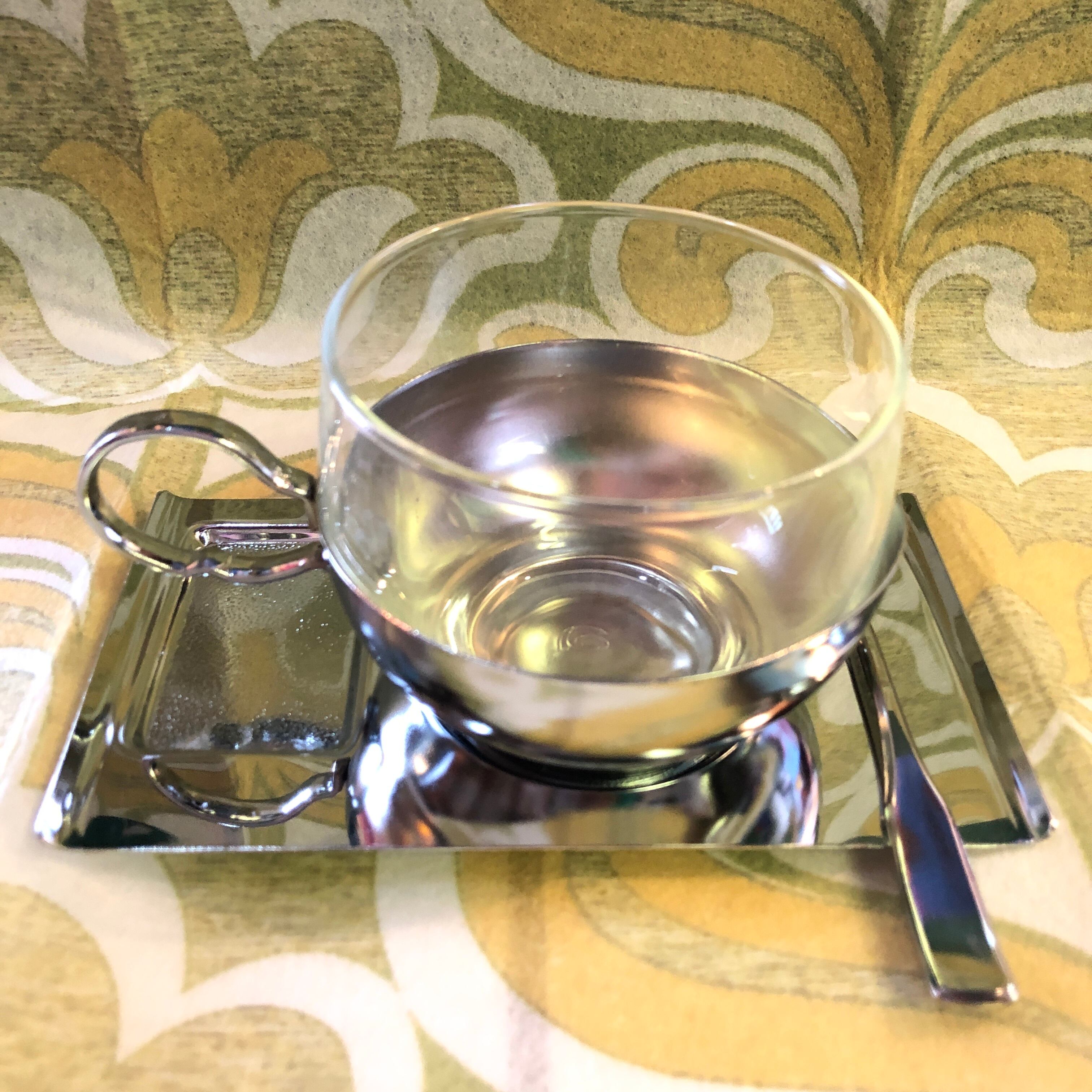 今回出会えたのは、ガラスと銀のコンビデザインのC&Sの中でも、ソーサー部分のデザインが面白いこちら。